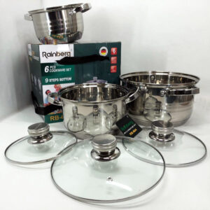Набір каструль Rainberg RB-604 нержавіюча сталь, капсульне 9-ти шарове дно (3 каструлі 3 кришки)Набор кастрюль Rainberg RB-604 нержавеющая сталь, капсульное 9-ти слойное дно (3 кастрюли 3 крышки)