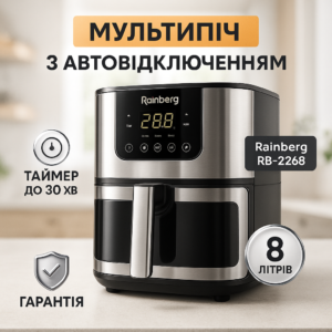 Аерогриль Rainberg RB-2268 4200 Вт аерофритюрниця безолійна без олії з регулюванням температури 8 лАэрогриль Rainberg RB-2268 4200W аэрофритюрница безмасляная без масла с регулировкой температуры 8 л