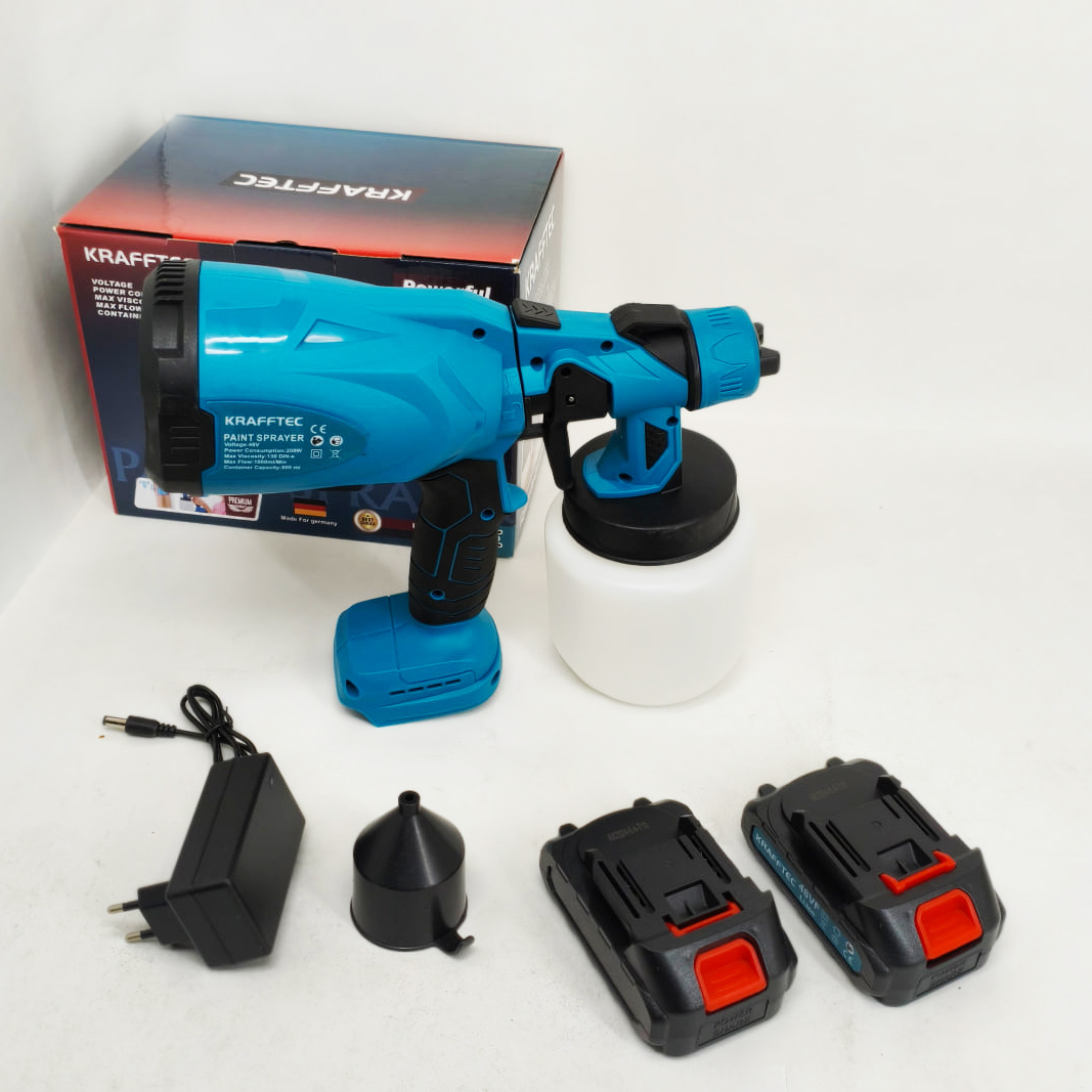 Краскопульт акумуляторний Krafftec 48V/2Ah 600Вт 800 мл фарборозпилювач портативний, 2 акумуляториКраскопульт аккумуляторный Krafftec 48V/2Ah 600Вт 800 мл краскораспылитель портативный, 2 аккумулятора