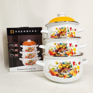 Набір із трьох емальованих каструль Edenberg EB-1887Набор из трех эмалированных кастрюль Edenberg EB-1887