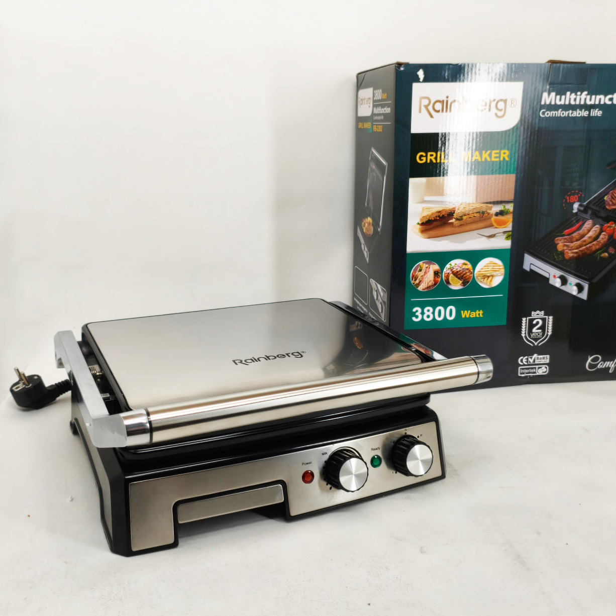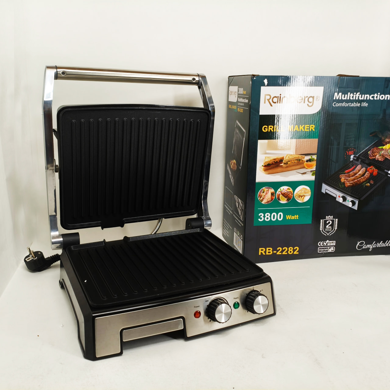 Гриль двосторонній німецької якості Rainberg RB-2282 притискний електричний гриль із пластинами 3800ВтГриль двухсторонний немецкого качества Rainberg RB-2282 прижимной электрический гриль с пластинами 3800Вт