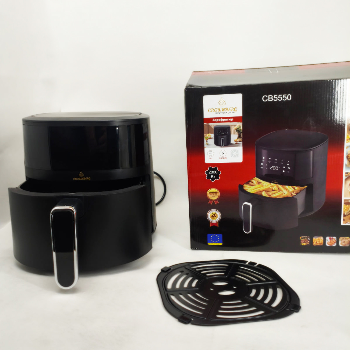 Кухонний потужний аерогриль Crownberg CB-5553 6.5Л 1600Вт повітряна аерофрітюрницяКухонный мощный аэрогриль Crownberg CB-5553 6.5Л 1600Вт воздушная аэрофритюрница