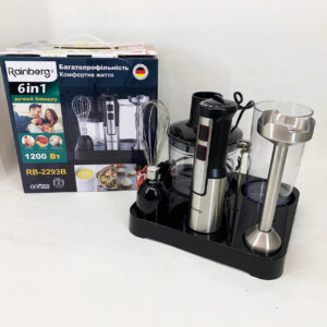 Багатофункціональний блендер 6в1 Rainberg RB-2293 1200 Вт кухонний подрібнювач ручний блендер міксер BlackМногофункциональный блендер 6в1 Rainberg RB-2293 1200Вт кухонный измельчитель ручной блендер миксер Black