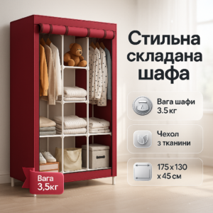 Шафа тканинна 3 секції складана з каркасом STORAGE WARDROBE 175 х 130 х 45 см. Колір: червонийШкаф тканевый 3 секции складной с каркасом STORAGE WARDROBE 175 х 130 х 45 см. Цвет: красный