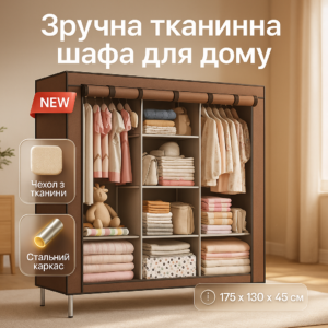 Шафа тканинна 3 секції складана з каркасом STORAGE WARDROBE 175 х 130 х 45 см. Колір: коричневийШкаф тканевый 3 секции складной с каркасом STORAGE WARDROBE 175 х 130 х 45 см. Цвет: коричневый