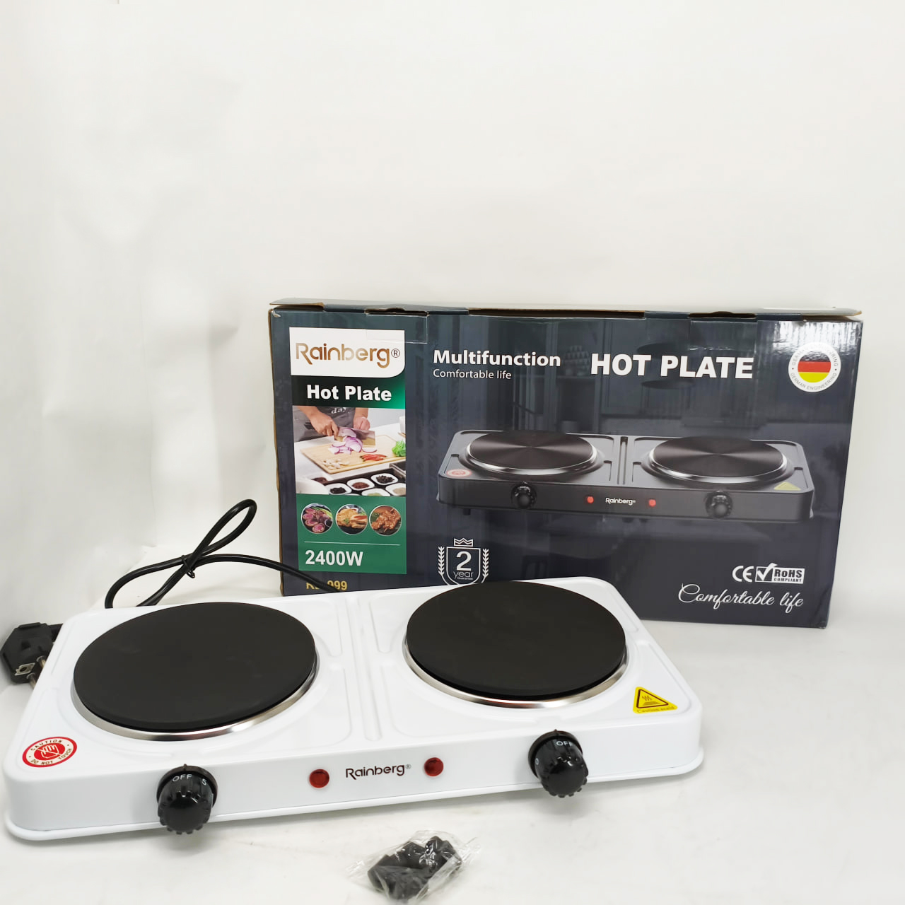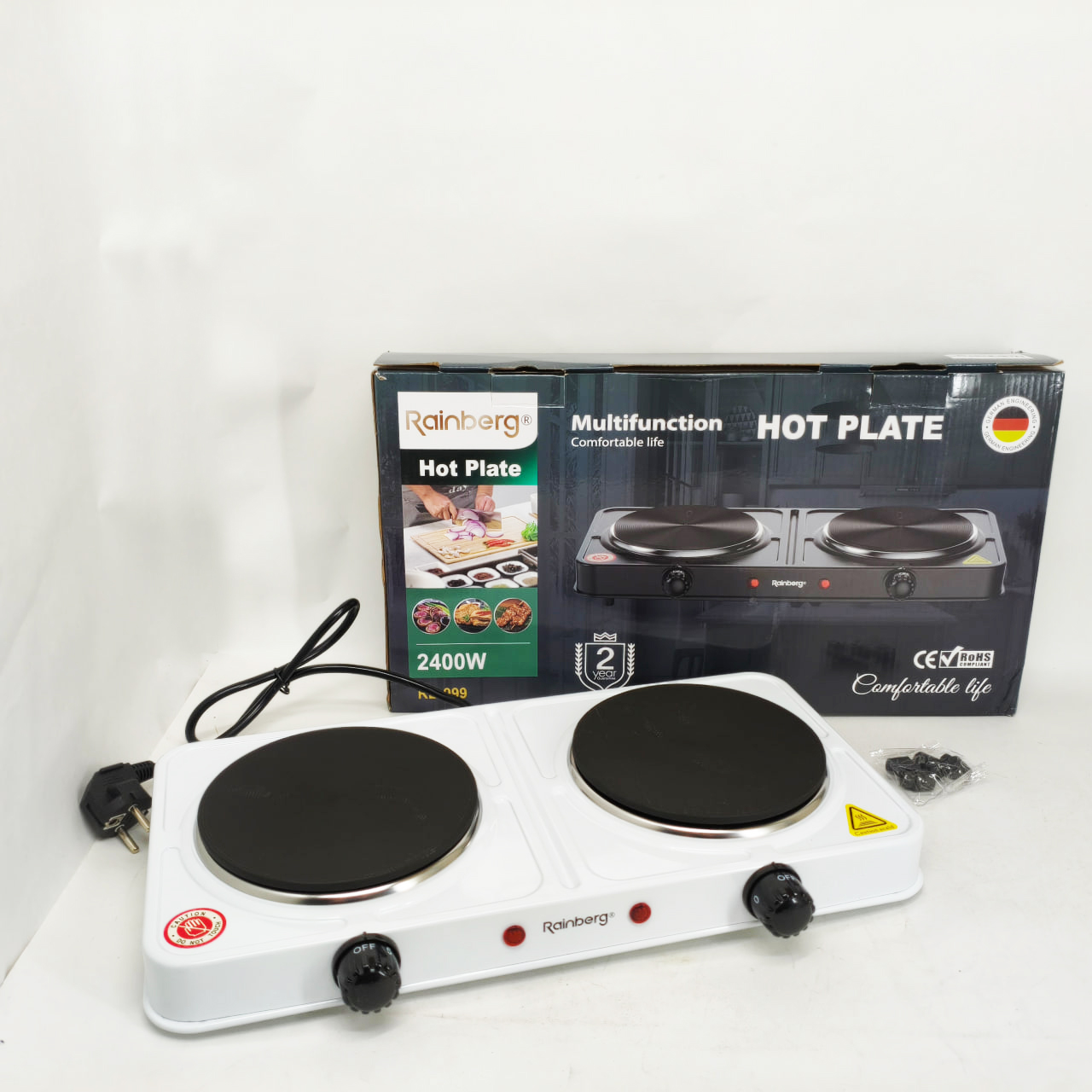 Електрична плита дискова плита Rainberg RB-999 електроплита 2400Вт WhiteЭлектрическая плита дисковая плита Rainberg RB-999 электроплита 2400Вт White