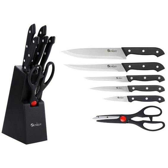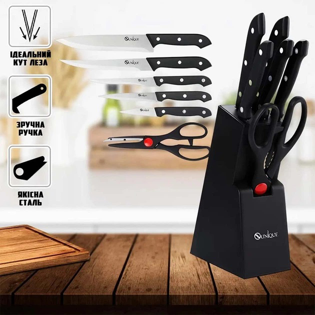 Набір кухонних ножів з ножицями та підставкою UNIQUE UN-1836Набор кухонных ножей с ножницами и подставкой UNIQUE UN-1836