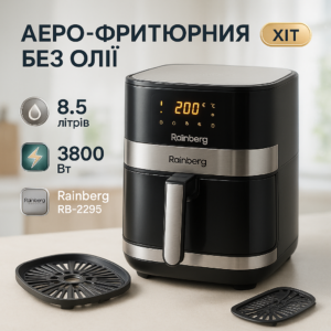 Аерогриль Rainberg RB-2295 3800 Вт, 8.5 літрів, повітряна мультипіч, фритюрниця без олії, аерогрильАэрогриль Rainberg RB-2295 3800 Вт, 8.5 литров, воздушная мультипечь, фритюрница без масла, аэрогриль