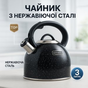 Чайник із свистком Edenberg EB-1440 з мармуровим покриттям 3л BlackЧайник со свистком Edenberg EB-1440 с мраморным покрытием 3л Black