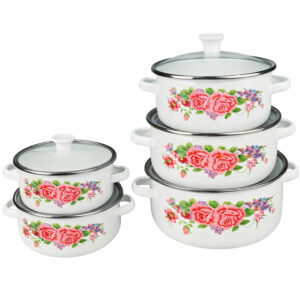 Набір із 5 емальованих каструль із кришками UNIQUE UN-2355 10 предметів Для всіх типів плитНабор из 5 эмалированных кастрюль с крышками UNIQUE UN-2355 10 предметов Для всех типов плит