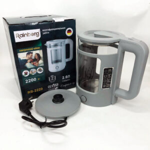 Електрочайник Rainberg RB-2220 скляний дисковий прозорий. Чайник із підсвічуванням 2200 Вт. Колір: сірийЭлектрочайник Rainberg RB-2220 стеклянный, дисковый прозрачный. Чайник с подсветкой 2200 Вт. Цвет: серый