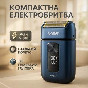Електробритва-шейвер VGR V-362 чоловіча професійна для сухого гоління з тримером. Колір: синійЭлектробритва-шейвер VGR V-362 мужская профессиональная для сухого бритья с триммером. Цвет: синий