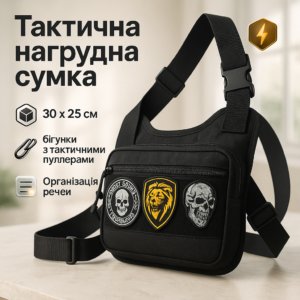 Тактична сумка для патчів Cordura 600D — 5 кишень, месенджер чорний з тканиниТактическая сумка для патчей Cordura 600D — 5 карманов, мессенджер черный из ткани