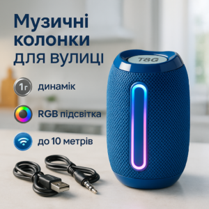 Портативна Bluetooth-колонка TG659 з ремінцем, Bluetooth колонка з підсвічуванням. Колір: синійПортативная Bluetooth-колонка TG659 с ремешком, Блютуз колонка с подсветкой. Цвет: синий