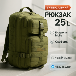 Тактичний похідний рюкзак, 25л, тактичний похідний військовий рюкзак. Колір: хакіТактический рюкзак, походный рюкзак, 25л, тактический походный военный рюкзак. Цвет: хаки