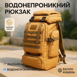 Армійський рюкзак тактичний 70 л Водонепроникний туристичний рюкзак. Колір: койотАрмейский рюкзак тактический 70 л + Подсумок Водонепроницаемый туристический рюкзак. Цвет: койот