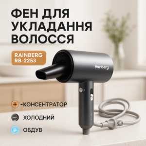 Професійний фен для волосся з іонізацією Rainberg RB-2253 2000Вт GrayПрофессиональный фен для волос с ионизацией Rainberg RB-2253 2000Вт Gray