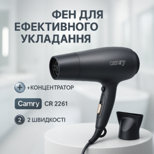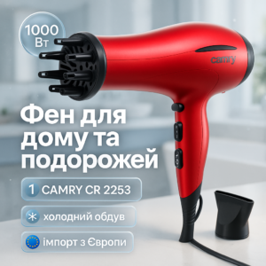 Фен для волосся Camry CR 2253 2600Вт з дифузором 2 швидкості 3 режимиФен для волос Camry CR 2253 2600Вт с диффузором 2 скорости 3 режима