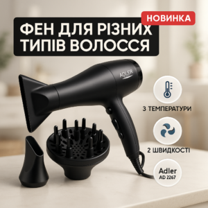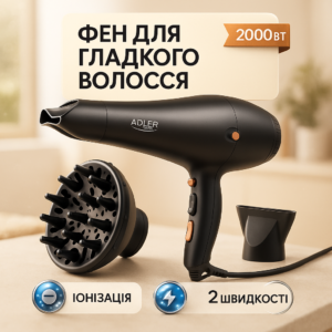 Фен для волосся Adler AD 2244 AC Motor 2000ВтФен для волос Adler AD 2244 AC Motor 2000Вт