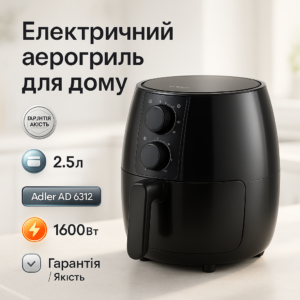 Аерофритниця безжирова Adler AD 6312 2.5л 1600ВтАэрофритюрница безжировая Adler AD 6312 2.5л 1600Вт