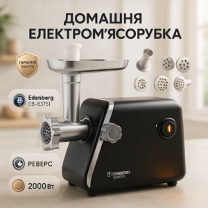 М'ясорубка електрична Edenberg EB-83751 2000Вт із насадками BlackМясорубка электрическая Edenberg EB-83751 2000Вт с насадками Black