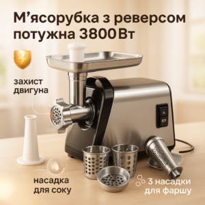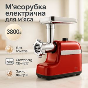 М'ясорубка Електрична шнекова Crownberg CB-4217 3800ВтМясорубка Электрическая шнековая Crownberg CB-4217 3800Вт