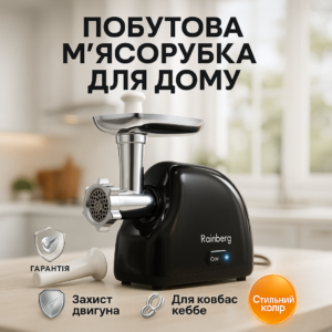 Електрична м'ясорубка Rainberg RB-678 3000Вт з насадкою для ковбас шнекова електром'ясорубкаЭлектрическая мясорубка Rainberg RB-678 3000Вт с насадкой для колбас шнековая электромясорубка