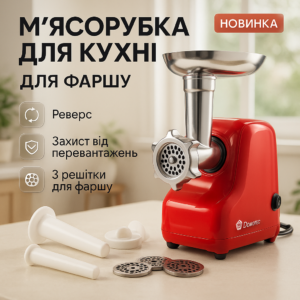 Кухонна електрична м'ясорубка Domotec MS-2017 з реверсом 2500Вт, м'ясорубка для шатківниці RedКухонная электрическая мясорубка Domotec MS-2017 с реверсом 2500Вт, мясорубка для шинковки Red