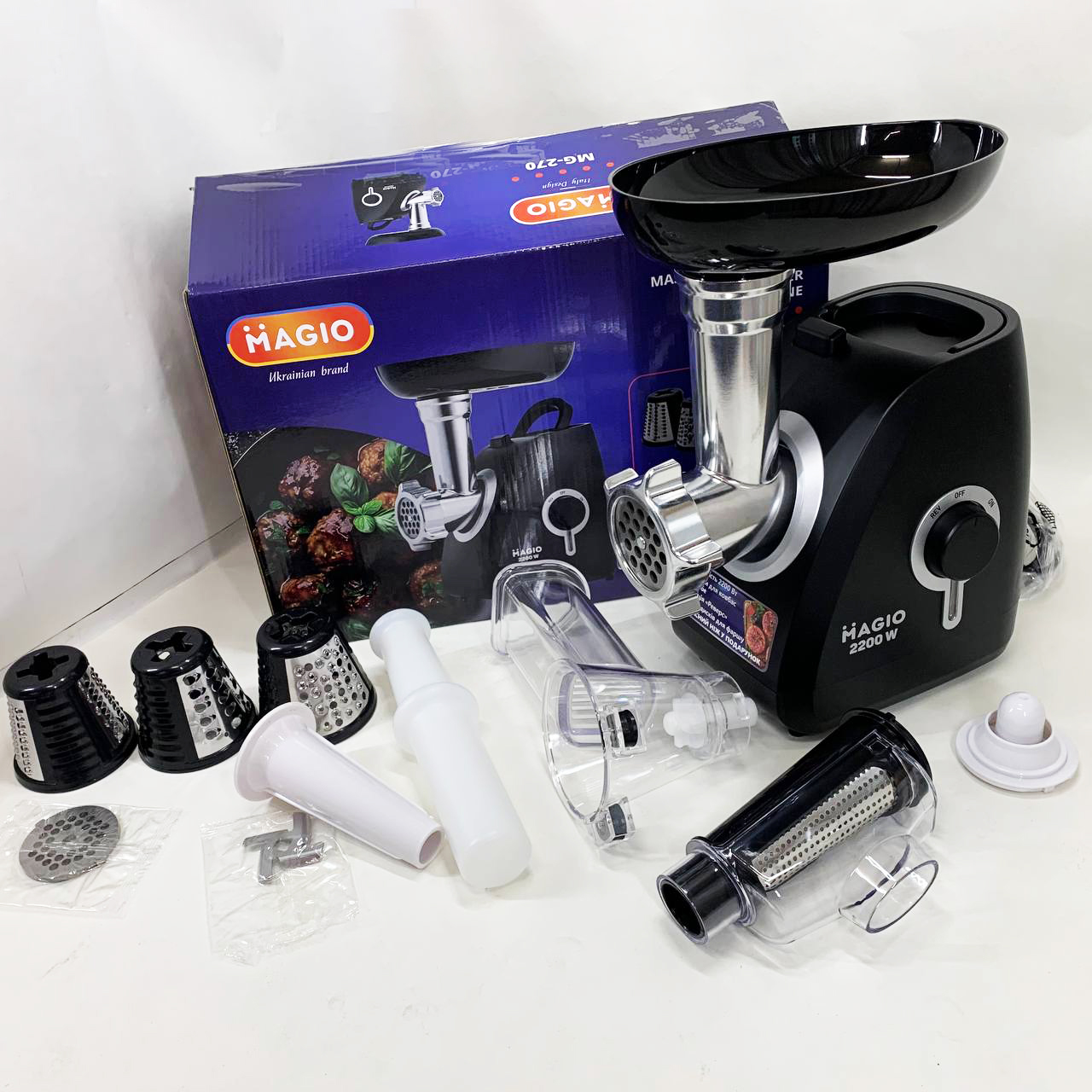 М'ясорубка MAGIO MG-271 Premium Line, Електрична м'ясорубка з насадками, Електром'ясорубка для шатківниціМясорубка MAGIO MG-271 Premium Line, Электрическая мясорубка с насадками, Электромясорубка для шинковки