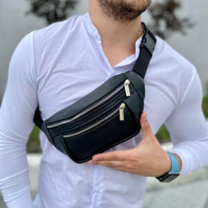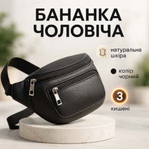 Шкіряна якісна бананка чоловіча - жіноча сумка, чорна сумка зі шкіриКожаная качественная бананка мужская – женская сумка, черная сумка из кожи