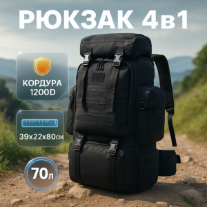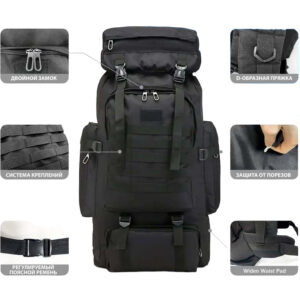 Рюкзак тактичний чорний 4в1 70 л Водонепроникний туристичний рюкзак. Колір: чорнийРюкзак тактический чорний 4в1 70 л + Подсумок Водонепроницаемый туристический рюкзак. Цвет: черный