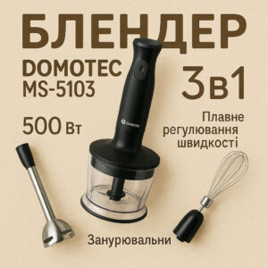 Блендер DOMOTEC MS-5103 3в1 занурювальний, 500 Вт, ручний занурювальний блендер, електричний блендерБлендер DOMOTEC MS-5103 3в1 погружной, 500 Вт, ручной погружной блендер, электрический блендер