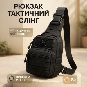 Якісна тактична сумка, укріплена чоловіча сумка, рюкзак тактичний слінг BlackКачественная тактическая сумка, укрепленная мужская сумка рюкзак тактическая слинг Black