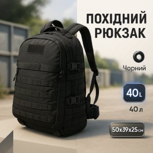 Рюкзак Тактичний на 40л штурмовий туристичний із системою MOLLE Чорний великийРюкзак Тактический на 40л штурмовой туристический с системой MOLLE Черный большой