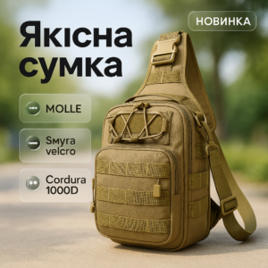 Якісна тактична сумка, укріплена чоловіча сумка, рюкзак тактичний слінг. Колір: койотКачественная тактическая сумка, укрепленная мужская сумка рюкзак тактическая слинг. Цвет: койот