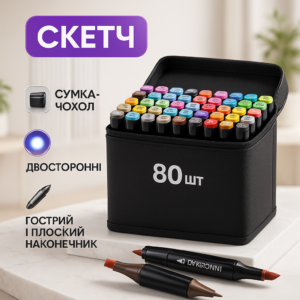 Набір маркерів для малювання Touch 80 шт двосторонні професійні фломастери для художниківНабор скетч маркеров для рисования Touch 80 шт двусторонние профессиональные фломастеры для художников