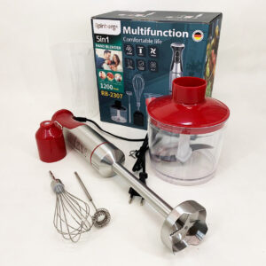 Універсальний блендер Rainberg RB-2307 5 в 1 поєднує функції занурювального блендера, віночка та подрібнювача. Потужність 1200 Вт та 15 швидкісних режимів забезпечують швидке та якісне змішування продуктів.