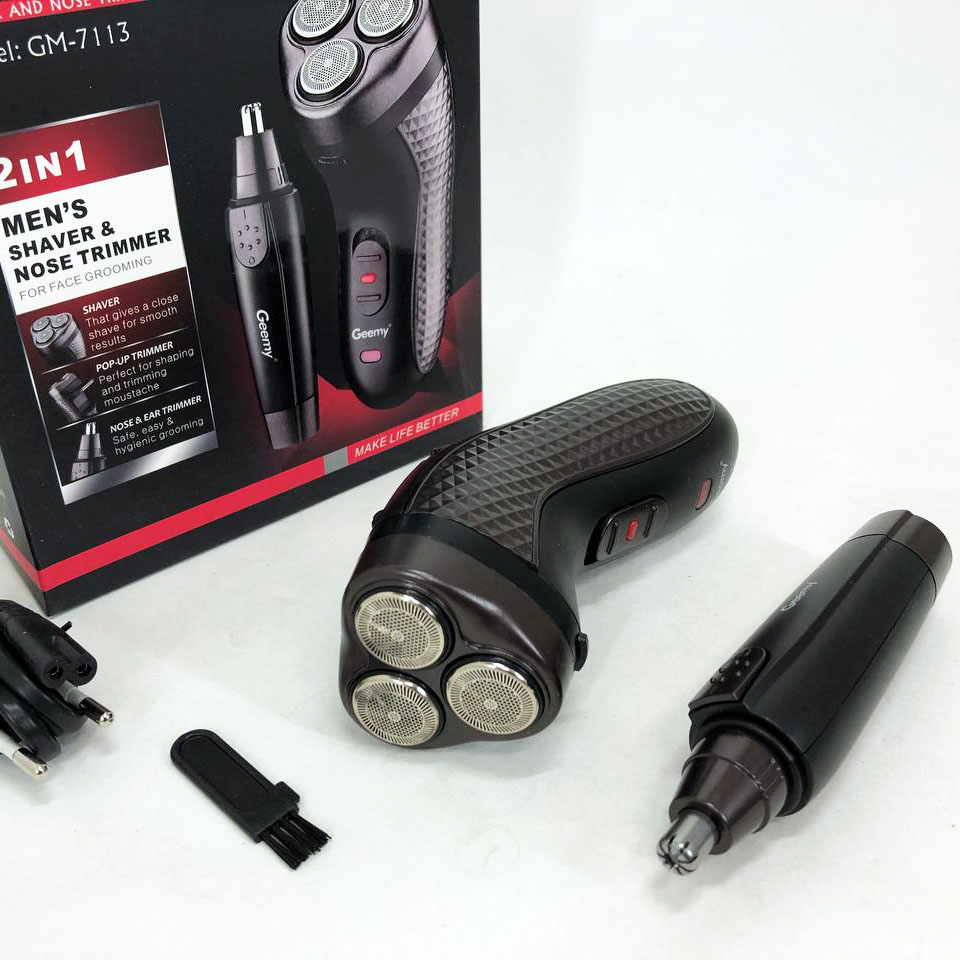 Електробритва + триммер Gemei GM 7113, 2 в 1 створена спеціально для чоловіків, які хочуть завжди добре виглядати як вдома, так і в дорозі. Є вбудований тример плюс тример для носа вух. При цьому про роздратування можна забути.