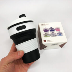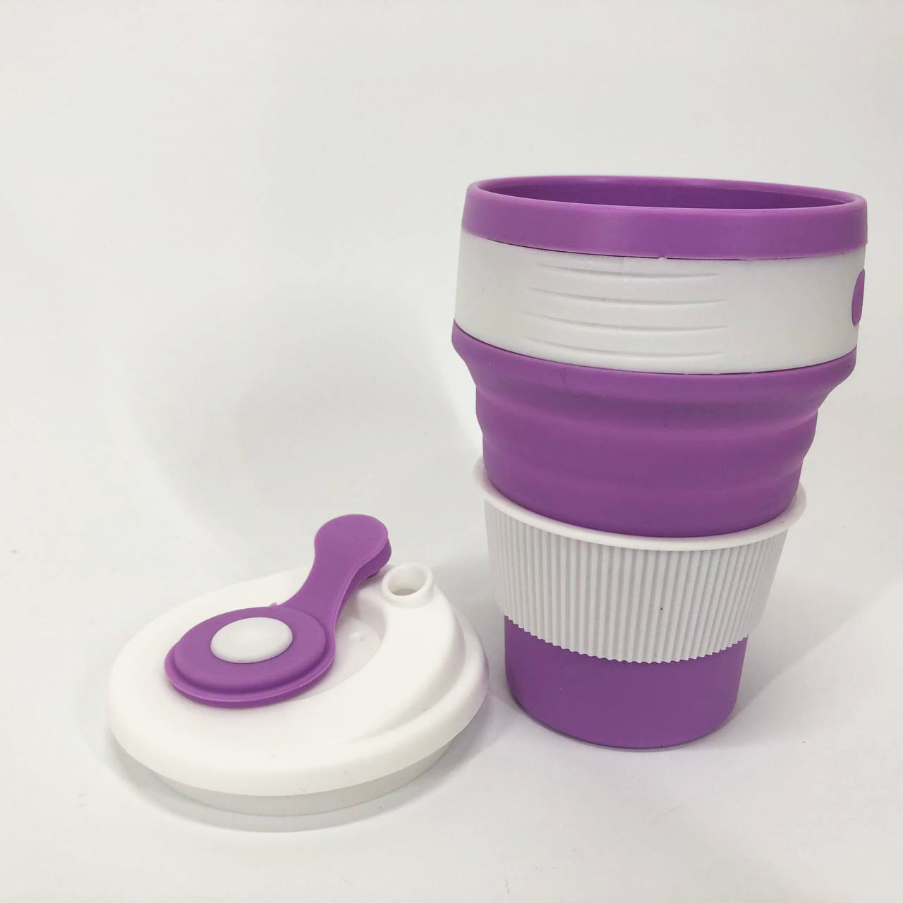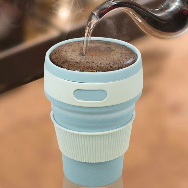 Портативна складана чашка з кришкою Collapsible виготовлена з харчового термостійкого силікону. Оригінальним рішенням від здавлювання та для зручного тримання силіконової чашки є жорсткий пластиковий обідок, який дозволить не обпалити пальці, якщо напій занадто гарячий і запобігає його проливанню