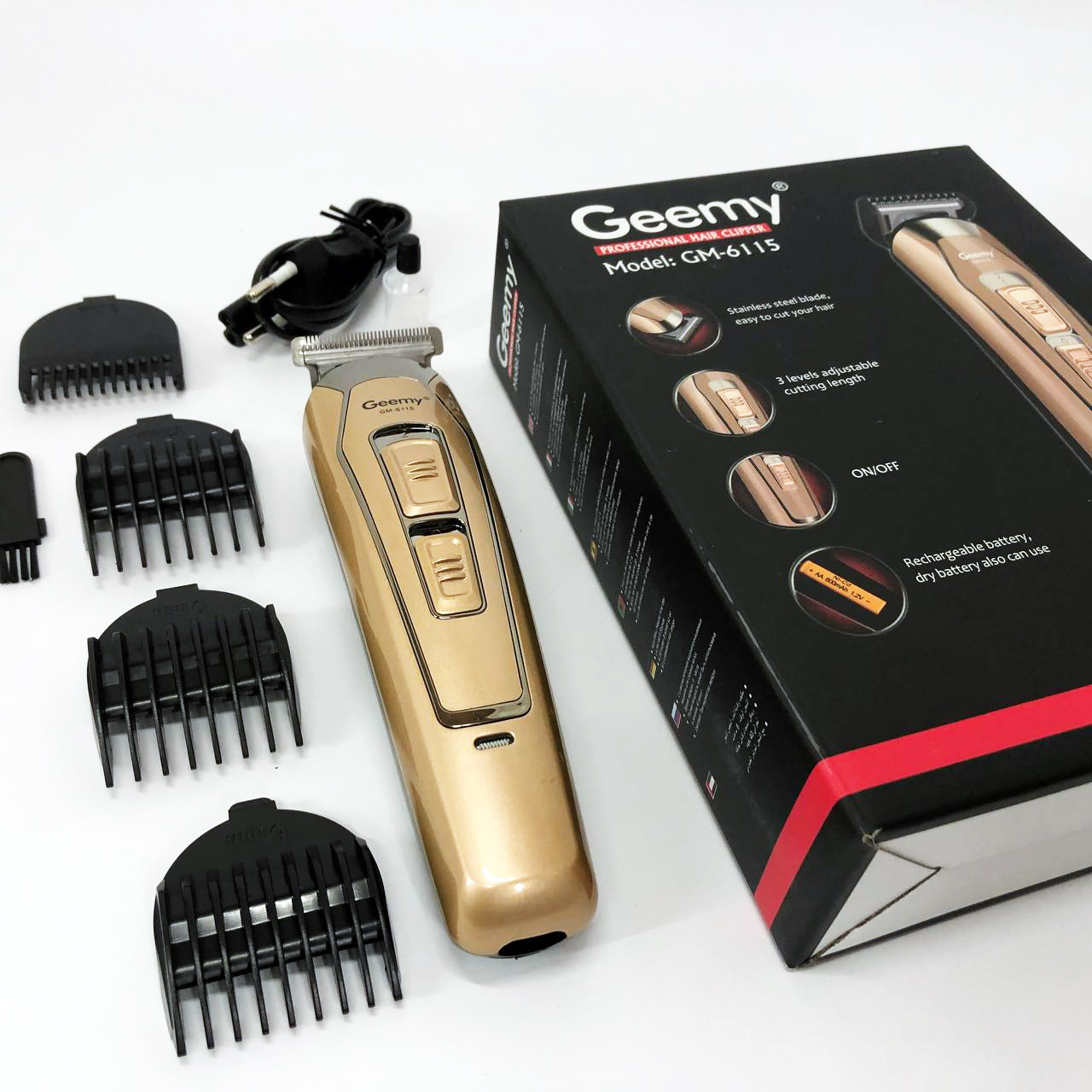 Професійні машинки для стрижки волосся Gemei дозволяють в домашніх умовах зробити модну зачіску, і підтримувати її, без послуг перукаря. Встановіть потрібну довжину стрижки за допомогою регулятора та увімкніть машинку одним легким рухом. Мінятидовжину стрижки максимально просто, як і доглядати машинку. Gemei GM 6115 дозволяє зробити стрижку різної довжини. Крім того, в комплекті йде спеціальне масло для змащування ножів машинки, а також щіточка для чищення Машинка для стрижки волосся Gemei GM 6115 має низький рівень шуму і вібрації, завдяки чому Ви не зазнаєте ніякого дискомфорту під час роботи з триммером.