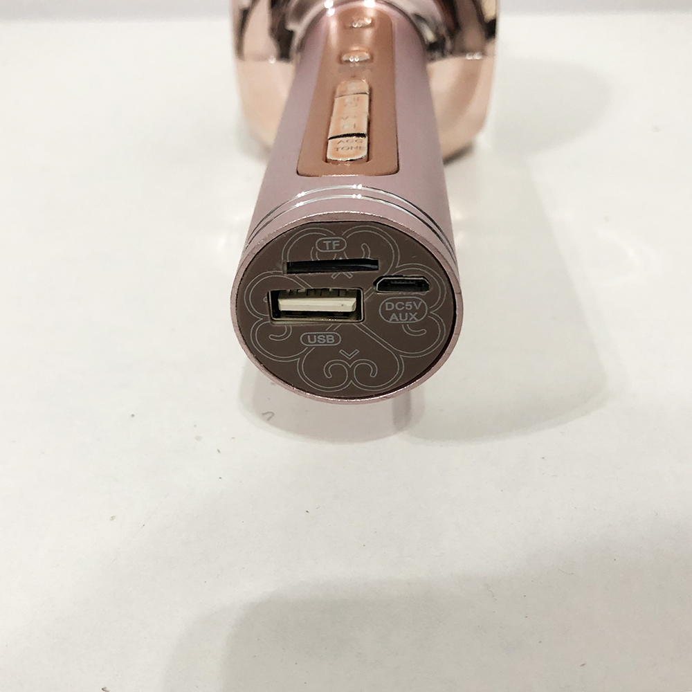 Из элементов управления присутствуют: кнопка вкл/выкл+режимы, кнопки регулировки звука+переключение треков, ползунковые регуляторы звука и реверберации микрофона (эхо). Интерфейс подключений (USB, TF, AUX) расположен в нижней части рукояти. Караоке микрофон YS-63 совместим с мобильными приложениями для устройств на iOS и Android. Вы можете исполнять любимые песни подключив микрофон к своему девайсу с помощью Bluetooth или кабеля. Для дополнительного удобства предусмотрен слот для microSD карточек, а так же функция записи.