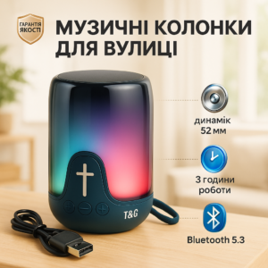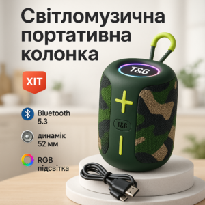 Портативна колонка TG642 з RGB підсвічуванням та ремінцем, колонка для вечірки. Колір: камуфляжПортативная колонка TG642 с RGB подсветкой и ремешком, колонка для вечеринки. Цвет: камуфляж