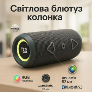 Портативна Bluetooth колонка TG359 7W з підсвічуванням RGB, акумуляторна колонка для музики. Колір: зеленийПортативная Bluetooth колонка TG359 7W с RGB подсветкой, аккумуляторная колонка для музыки. Цвет: зеленый