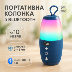 Портативна Bluetooth колонка TG359 7W з підсвічуванням RGB, акумуляторна колонка для музики. Колір: синійПортативная Bluetooth колонка TG359 7W с RGB подсветкой, аккумуляторная колонка для музыки. Цвет: синий