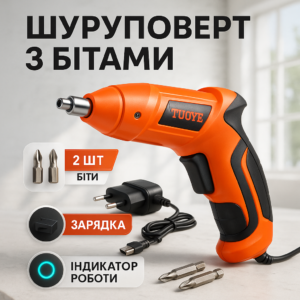 Шуруповерт викрутка Електрична PRO TUOYE з бітами та адаптером, електро шуруповерт, компактний легкийШуруповерт отвертка Электрическая PRO TUOYE с битами и адаптером, электро шуруповерт, компактный легкий