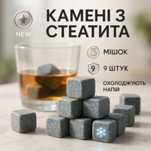 Камені для віскі Whiskey Stones з стеатита (9шт)Камни для виски Whiskey Stones из стеатита (9шт)
