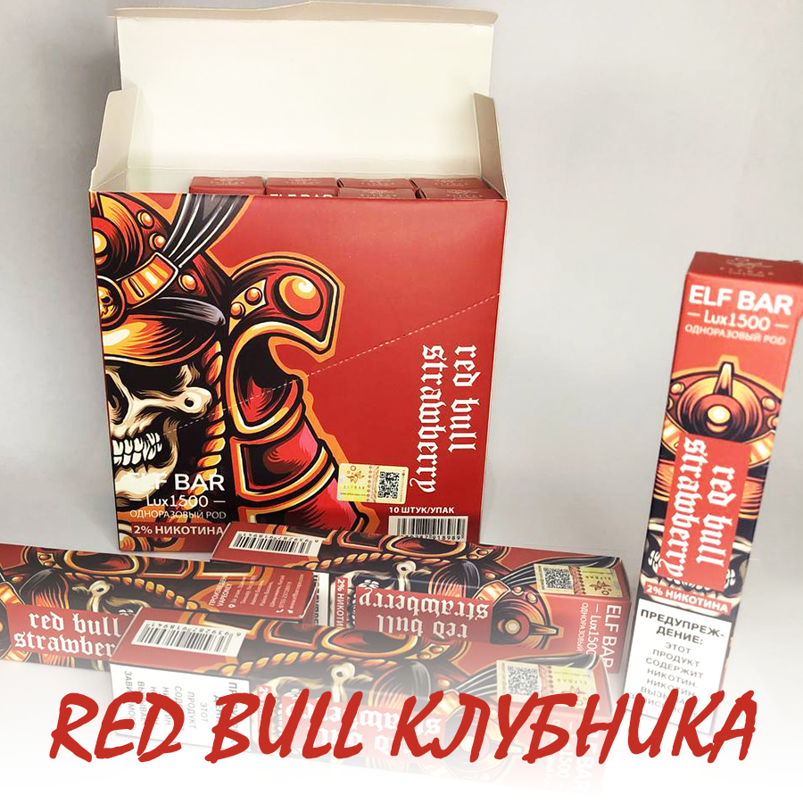 Elf Bar LUX Original Ельф Бар 1500 тяг. Red Bull Полуниця (Strawberry Energy)Elf Bar LUX Original Эльф Бар 1500 тяг. Red Bull Клубника (Strawberry Energy)