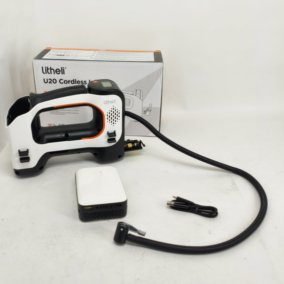 Аккумуляторный компрессор с фонарем Litheli питание от павербанка УМБ Litheli Power Bank 20000 мАч 45ВтАккумуляторный компрессор с фонарем Litheli питание от павербанка УМБ Litheli Power Bank 20000 мАч 45Вт