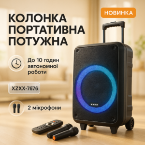 Акустична колонка з акумулятором ZXX-7676 200Вт портативна переносна колонка Bluetooth на колесахАкустическая колонка с аккумулятором ZXX-7676 200Вт портативная переносная колонка Bluetooth на колёсах
