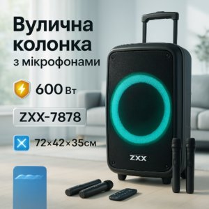 Акустична переносна колонка ZXX-7878/8161 600 Вт 15" 72х42х35смАкустическая переносная колонка ZXX-7878/ 8161 600 Вт 15″ 72х42х35см